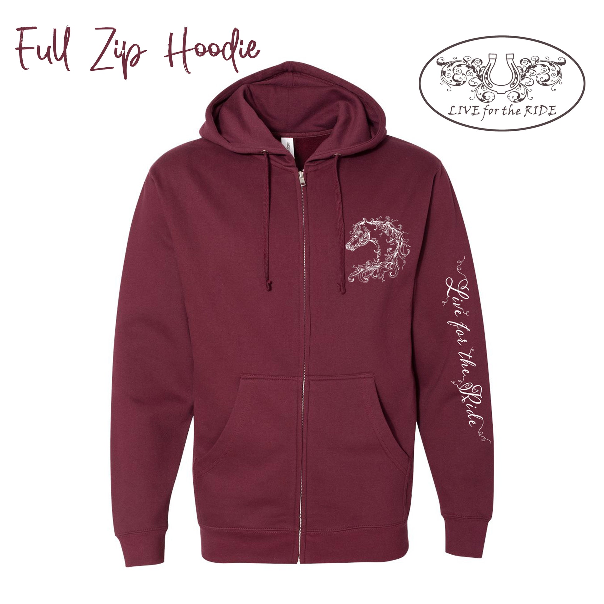 ❤️ Scroll Horse Full-Zip Hoodie – Plum | Live for the Ride